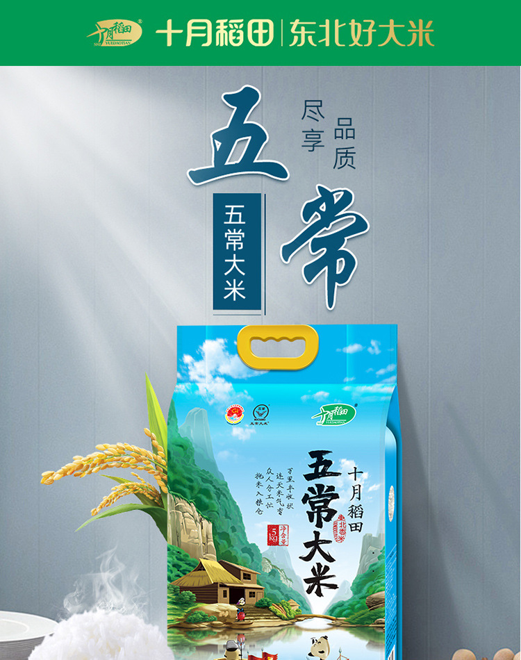 十月稻田五常大米稻花香2号5kg10斤东北大米品牌直供批发