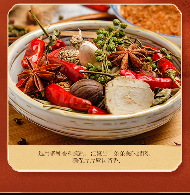 腊香肠(4) 二刀腊肉(6) 五花腊肉(6) 麻辣鸡(1) 豆豉(1)