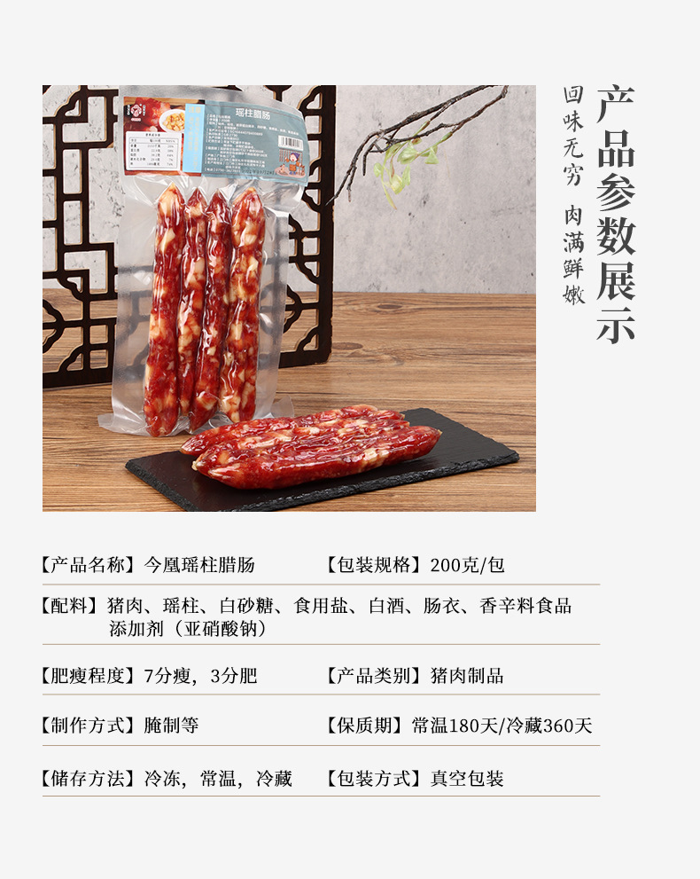 今凰广式腊肠广东特产江门风味腊肠煲仔饭腊肠腊味香肠200克