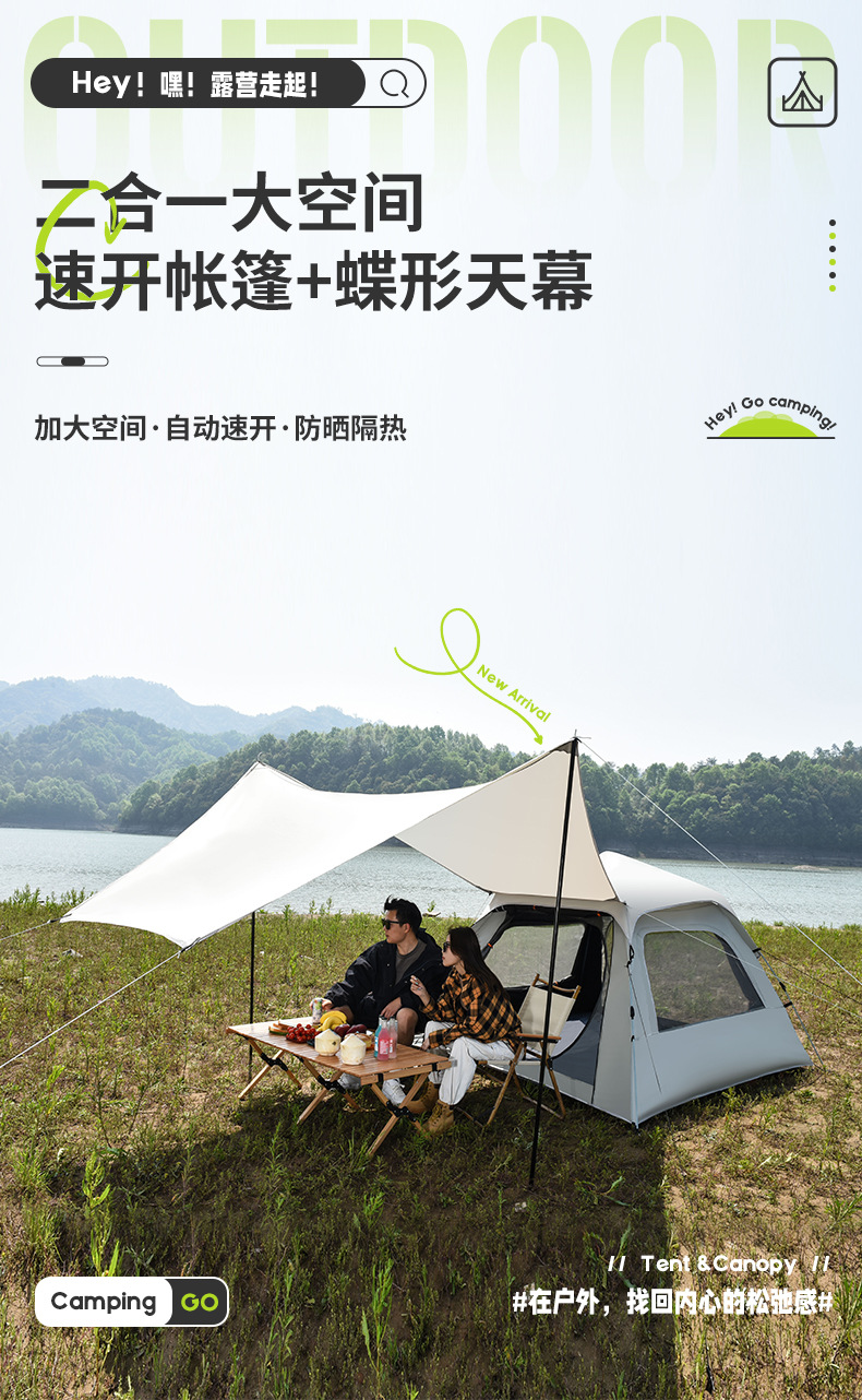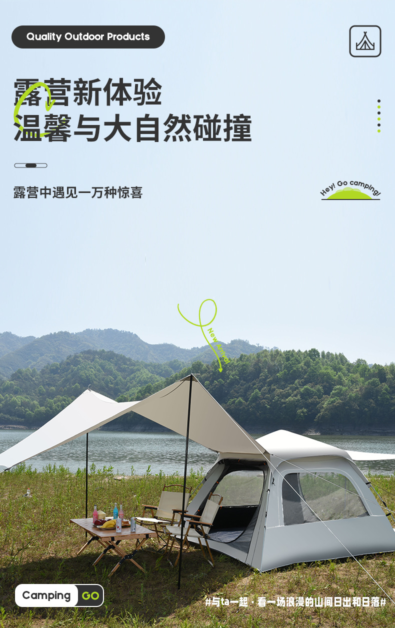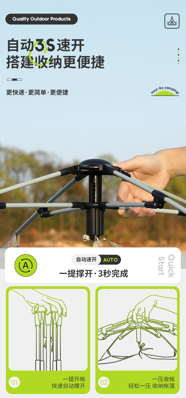 天幕二合一体帐篷全自动速开露营便携式帐篷户外折叠帐篷野营野餐