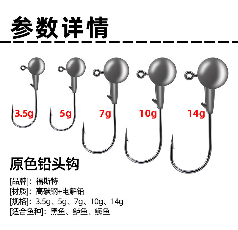 福斯特加粗铅头钩加强版路亚原色铅头钩防挂底鱼钩厂家批发清仓