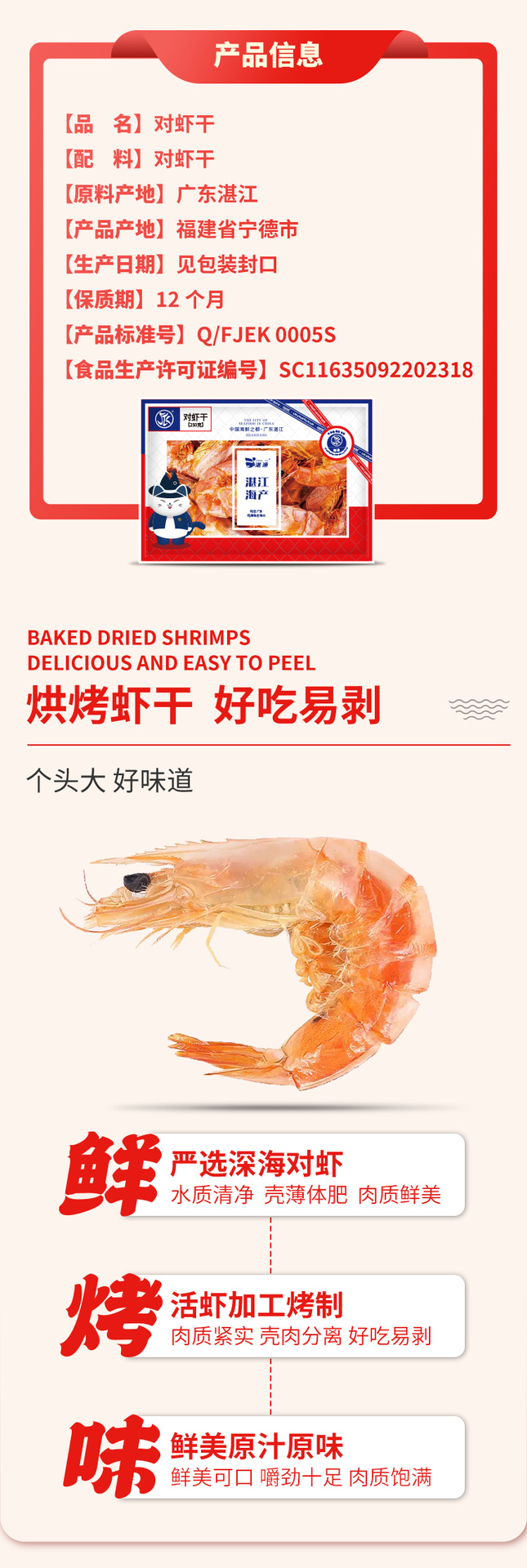 本网页所展示的有关【对虾干250克非烤虾即食非小吃零食对虾干批发海鲜干货对干虾海味 2包_福建_福建杰尔康食品有限公司】的信息/图片/参数等由中华旅行网.旅行的会员【福建杰尔康食品有限公司】提供,由中华旅行网.旅行会员【福建杰尔康食品有限公司】自行对信息/图片/参数等的真实性、准确性和合法性负责,本平台(本网站)仅提供展示服务,请谨慎交易,因交易而产生的法律关系及法律纠纷由您自行协商解决,本平台(本网站)对此不承担任何责任。您在本网页可以浏览【对虾干250克非烤虾即食非小吃零食对虾干批发海鲜干货对干虾海味 2包_福建_福建杰尔康食品有限公司】有关的信息/图片/价格等及提供【对虾干250克非烤虾即食非小吃零食对虾干批发海鲜干货对干虾海味 2包_福建_福建杰尔康食品有限公司】的商家公司简介、联系方式等信息。