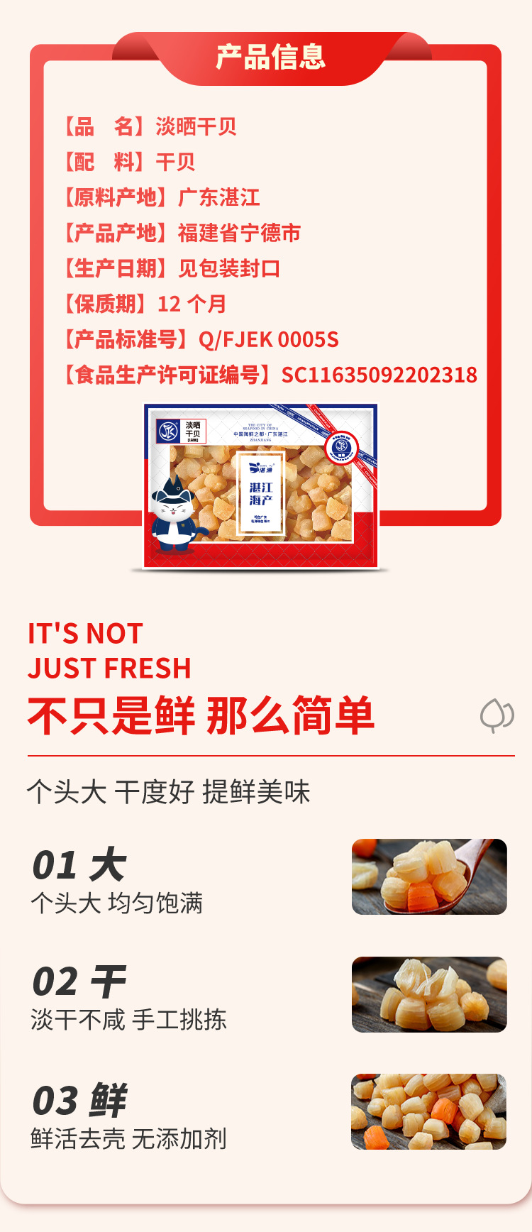 本网页所展示的有关【扇贝丁海鲜干货干贝晾晒营养扇贝湛江特产干贝丁海味干货瑶柱干 2件_福建_福建杰尔康食品有限公司】的信息/图片/参数等由中华旅行网.旅行的会员【福建杰尔康食品有限公司】提供,由中华旅行网.旅行会员【福建杰尔康食品有限公司】自行对信息/图片/参数等的真实性、准确性和合法性负责,本平台(本网站)仅提供展示服务,请谨慎交易,因交易而产生的法律关系及法律纠纷由您自行协商解决,本平台(本网站)对此不承担任何责任。您在本网页可以浏览【扇贝丁海鲜干货干贝晾晒营养扇贝湛江特产干贝丁海味干货瑶柱干 2件_福建_福建杰尔康食品有限公司】有关的信息/图片/价格等及提供【扇贝丁海鲜干货干贝晾晒营养扇贝湛江特产干贝丁海味干货瑶柱干 2件_福建_福建杰尔康食品有限公司】的商家公司简介、联系方式等信息。