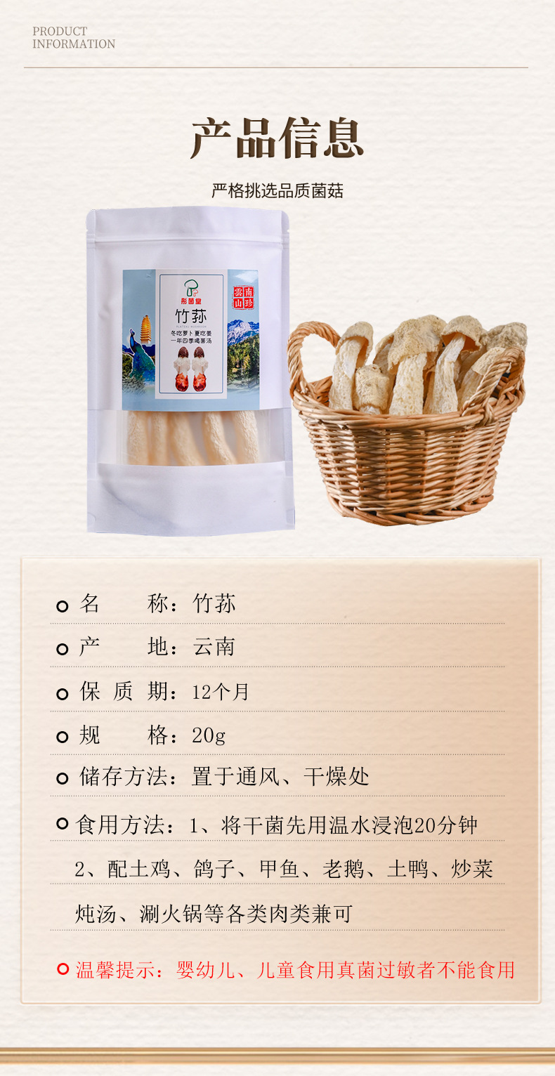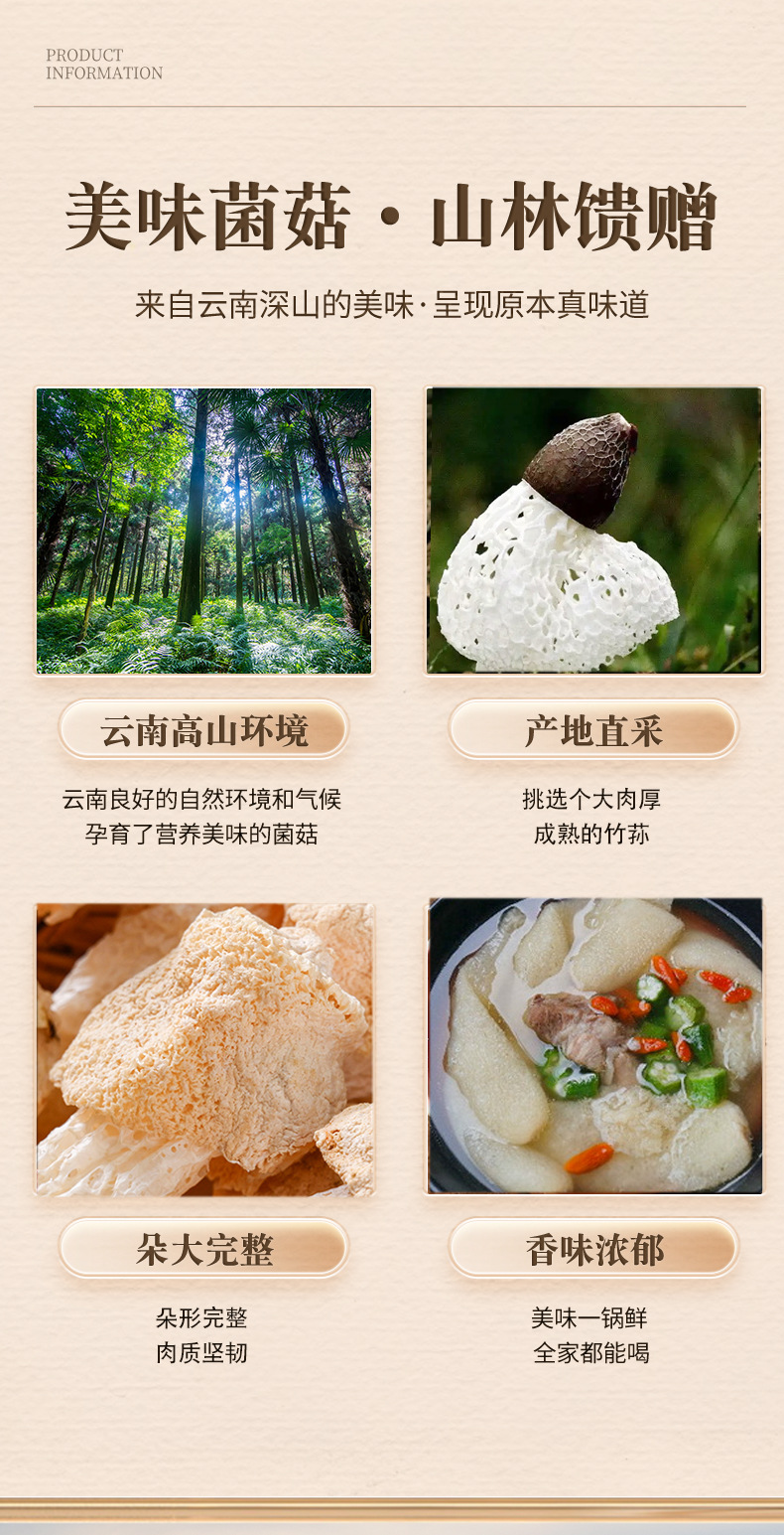 竹荪单品工厂伴手礼大量批发竹荪菌干货无硫云南菌汤包汤料包竹荪