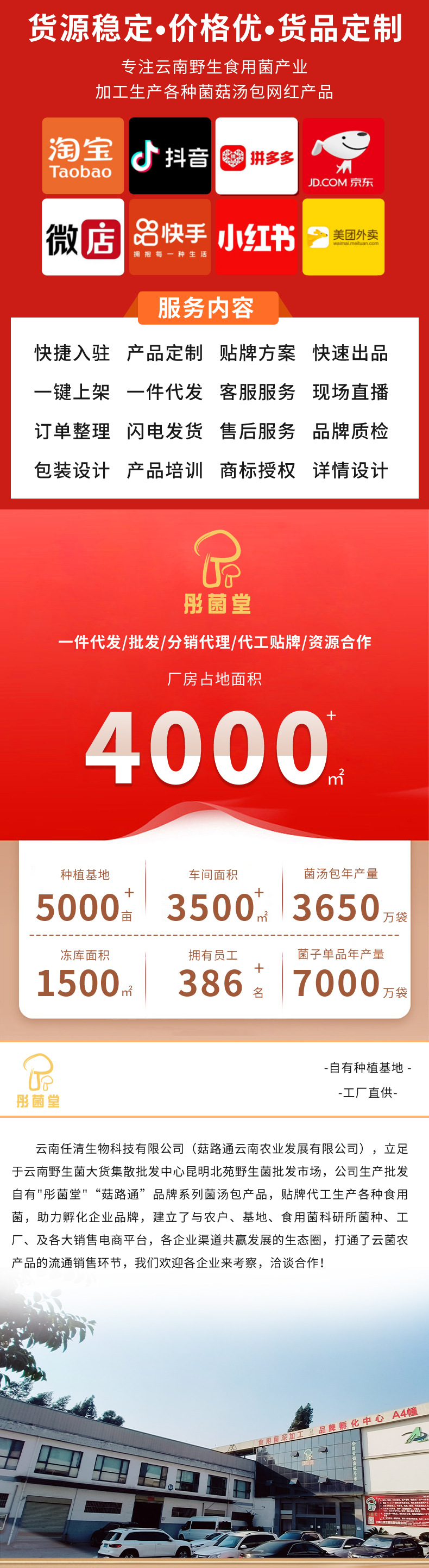 菌菇山珍礼盒.节日礼品(8) 有机食用菌菇(8) 菌菇预制菜.调味料(13) 菌汤包预包装干货(27) 菌菇单品预包装干货(49) …