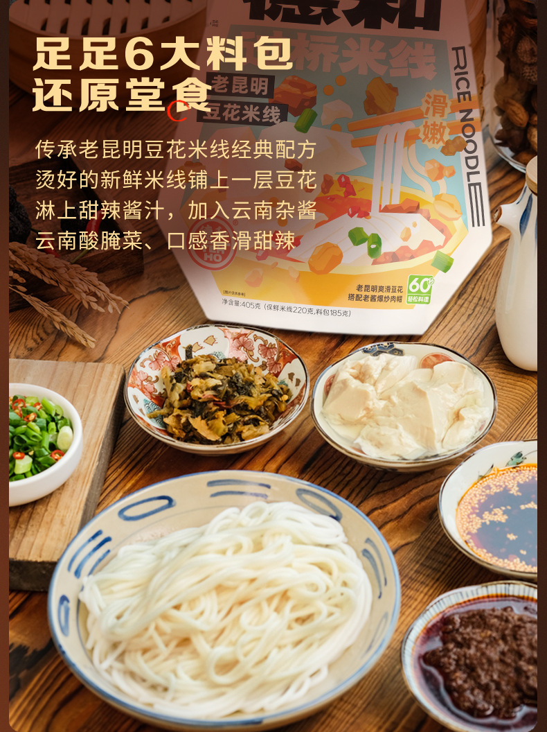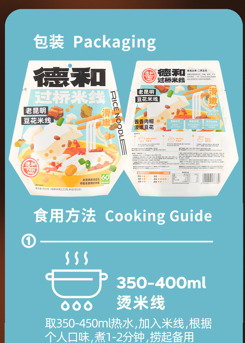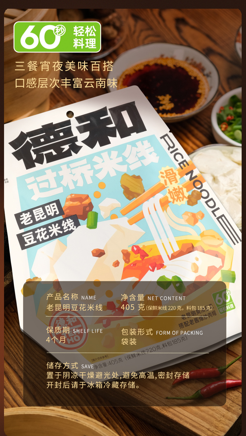 德和老昆明豆花米线爽滑豆花搭配老酱肉帽405克夜宵小吃懒人速食