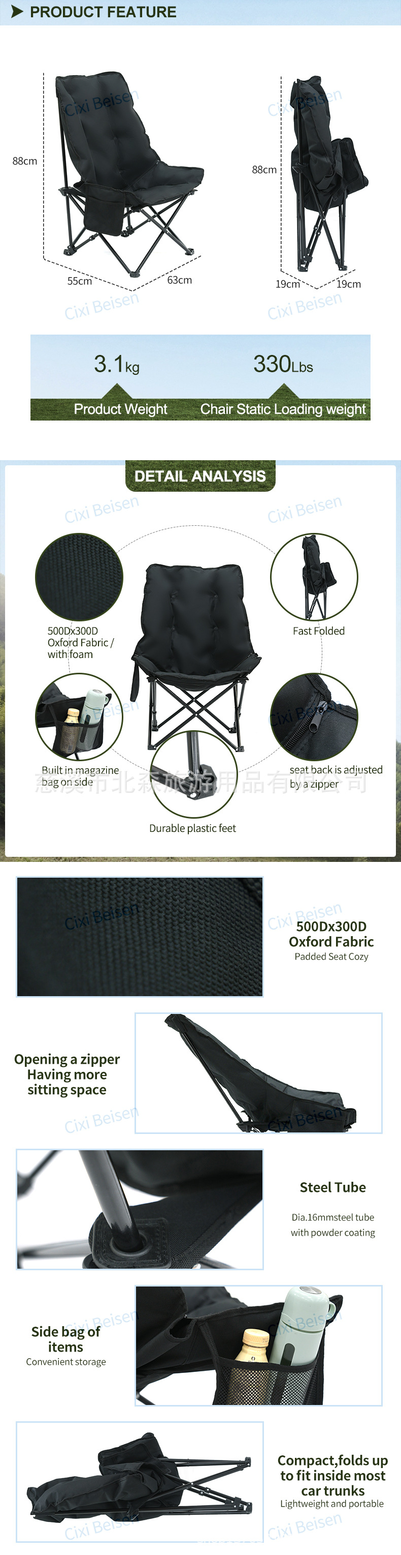 北森工厂直销零售批发户外露营折叠椅 野营地便携带兜夹棉月亮椅