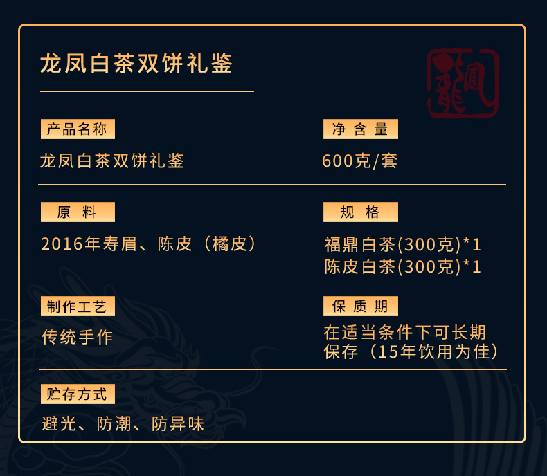 龙凤双饼白茶礼盒装福鼎白茶陈皮白茶寿眉老白茶茶叶礼品茶叶送礼