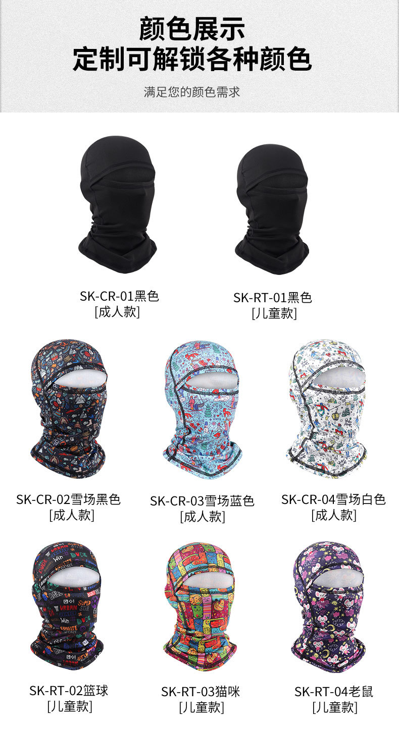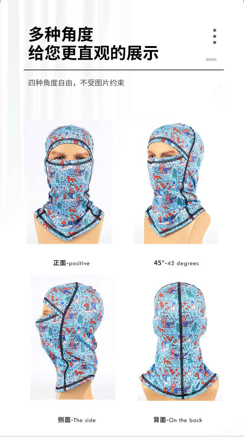 千迁沃加绒防风儿童滑雪头套抓绒保暖帽透气护脸面巾户外骑行面罩