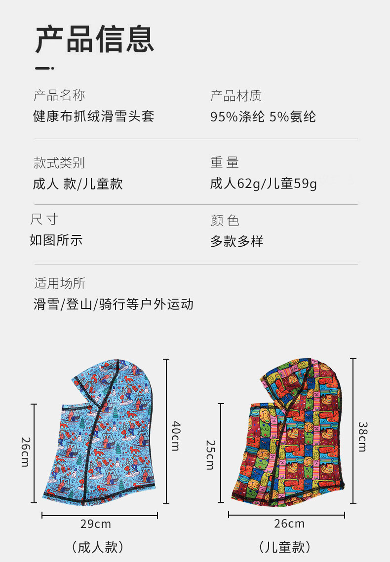 本网页所展示的有关【千迁沃加绒防风儿童滑雪头套抓绒保暖帽透气护脸面巾户外骑行面罩2个_滑雪装备_义乌市千迁沃户外用品有限公司】的信息/图片/参数等由中华旅行网.旅行的会员【义乌市千迁沃户外用品有限公司】提供,由中华旅行网.旅行会员【义乌市千迁沃户外用品有限公司】自行对信息/图片/参数等的真实性、准确性和合法性负责,本平台(本网站)仅提供展示服务,请谨慎交易,因交易而产生的法律关系及法律纠纷由您自行协商解决,本平台(本网站)对此不承担任何责任。您在本网页可以浏览【千迁沃加绒防风儿童滑雪头套抓绒保暖帽透气护脸面巾户外骑行面罩2个_滑雪装备_义乌市千迁沃户外用品有限公司】有关的信息/图片/价格等及提供【千迁沃加绒防风儿童滑雪头套抓绒保暖帽透气护脸面巾户外骑行面罩2个_滑雪装备_义乌市千迁沃户外用品有限公司】的商家公司简介、联系方式等信息。