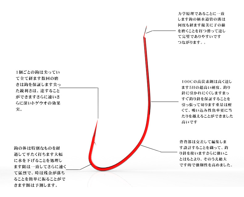 1超高硬度5H 100C碳钢 在不破坏作为超强碳钢素材特性(不让鱼钩变脆饵折断)的范围内做到碳素含量最高值