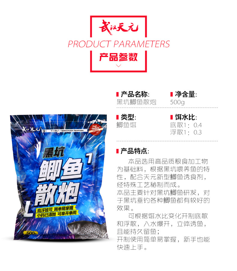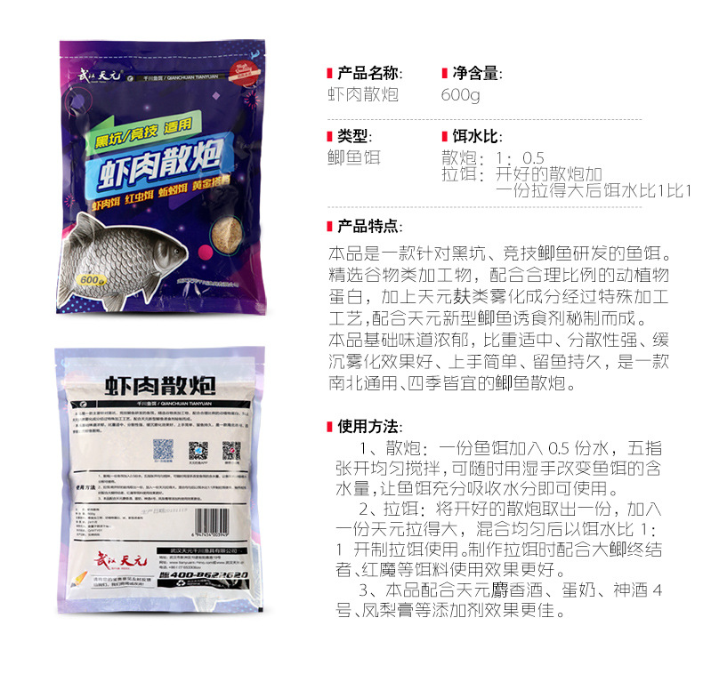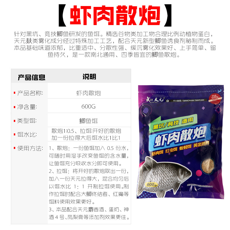 武汉天元虾肉散炮专用黑坑大混养竞技鲫鱼饵钓鱼饵料鲫鱼散炮