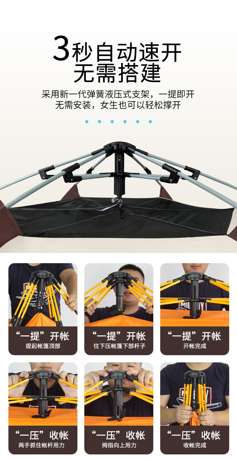 户外帐篷4-8人露营帐篷便携式全自动帐蓬遮阳防晒野营速开帐篷