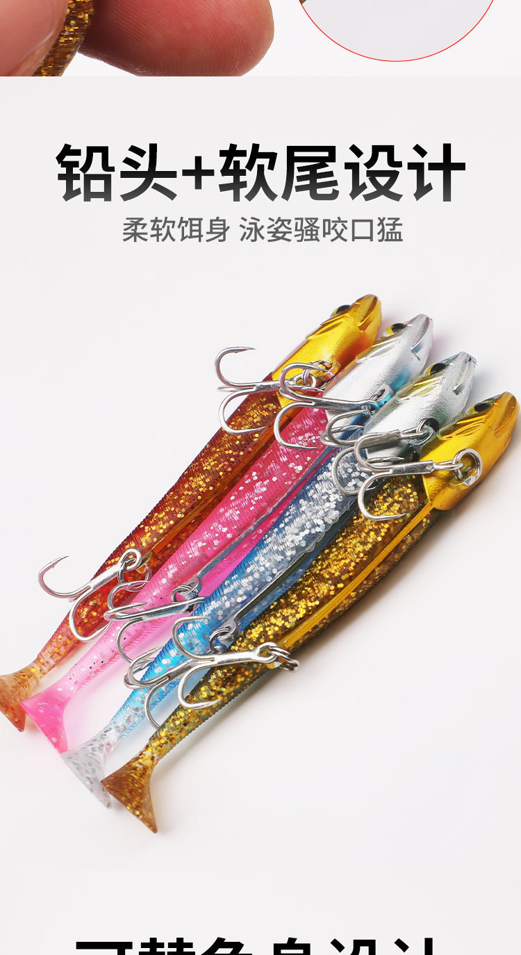 新款路亚铅头软饵T尾大克重19g 23g 30g 37g沉水远投淡水海钓批发