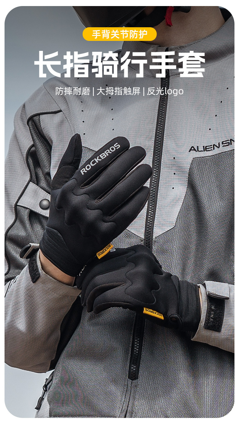 洛克兄弟骑行手套全指摩托车电动车自行车手套长指触屏男女春秋季
