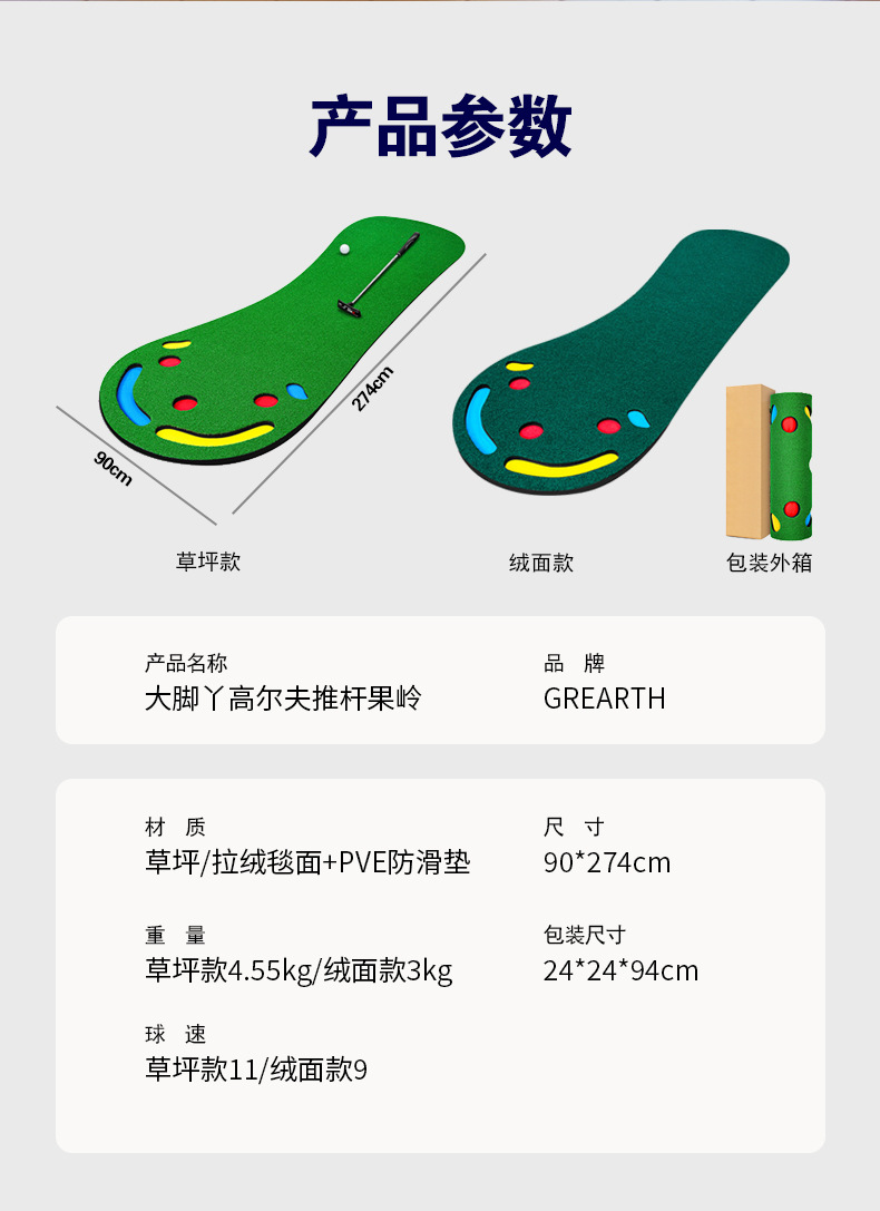 XY亚马逊热销大脚丫高尔夫果岭推杆练习器户外室内迷你便携练习毯