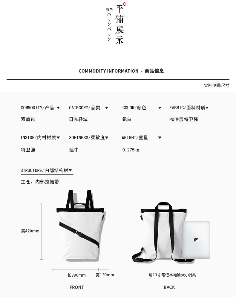 本网页所展示的有关【创意休闲旅行双肩包 大容量防水耐撕手提背包商务通勤多功能背包 100个_徒步背包_深圳市诺亚思户外用品有限公司】的信息/图片/参数等由中华旅行网.旅行的会员【深圳市诺亚思户外用品有限公司】提供,由中华旅行网.旅行会员【深圳市诺亚思户外用品有限公司】自行对信息/图片/参数等的真实性、准确性和合法性负责,本平台(本网站)仅提供展示服务,请谨慎交易,因交易而产生的法律关系及法律纠纷由您自行协商解决,本平台(本网站)对此不承担任何责任。您在本网页可以浏览【创意休闲旅行双肩包 大容量防水耐撕手提背包商务通勤多功能背包 100个_徒步背包_深圳市诺亚思户外用品有限公司】有关的信息/图片/价格等及提供【创意休闲旅行双肩包 大容量防水耐撕手提背包商务通勤多功能背包 100个_徒步背包_深圳市诺亚思户外用品有限公司】的商家公司简介、联系方式等信息。
