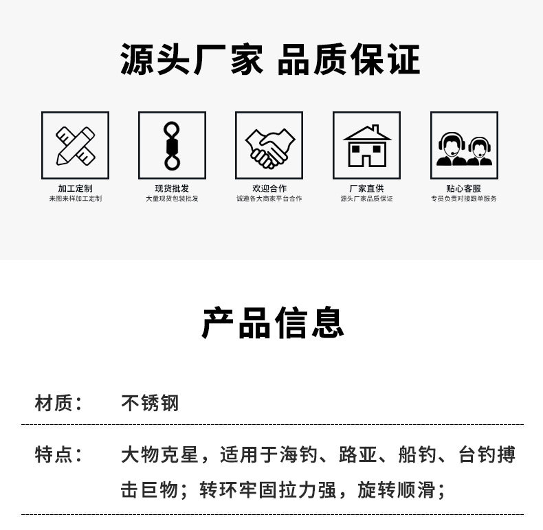 本网页所展示的有关【不锈钢双头轴承转环海钓大物强拉力高速八字环连接器8字环小配件 100个_渔具_慈溪市浒欣谊渔具配件厂】的信息/图片/参数等由中华旅行网.旅行的会员【慈溪市浒欣谊渔具配件厂】提供,由中华旅行网.旅行会员【慈溪市浒欣谊渔具配件厂】自行对信息/图片/参数等的真实性、准确性和合法性负责,本平台(本网站)仅提供展示服务,请谨慎交易,因交易而产生的法律关系及法律纠纷由您自行协商解决,本平台(本网站)对此不承担任何责任。您在本网页可以浏览【不锈钢双头轴承转环海钓大物强拉力高速八字环连接器8字环小配件 100个_渔具_慈溪市浒欣谊渔具配件厂】有关的信息/图片/价格等及提供【不锈钢双头轴承转环海钓大物强拉力高速八字环连接器8字环小配件 100个_渔具_慈溪市浒欣谊渔具配件厂】的商家公司简介、联系方式等信息。