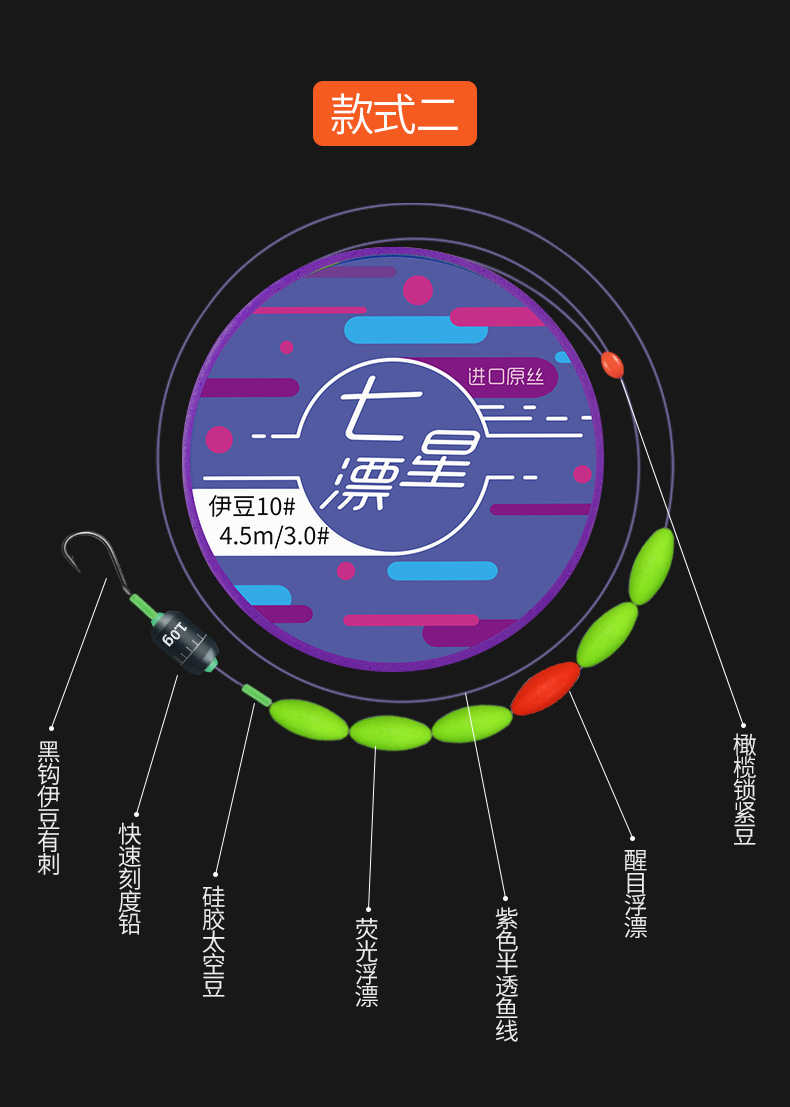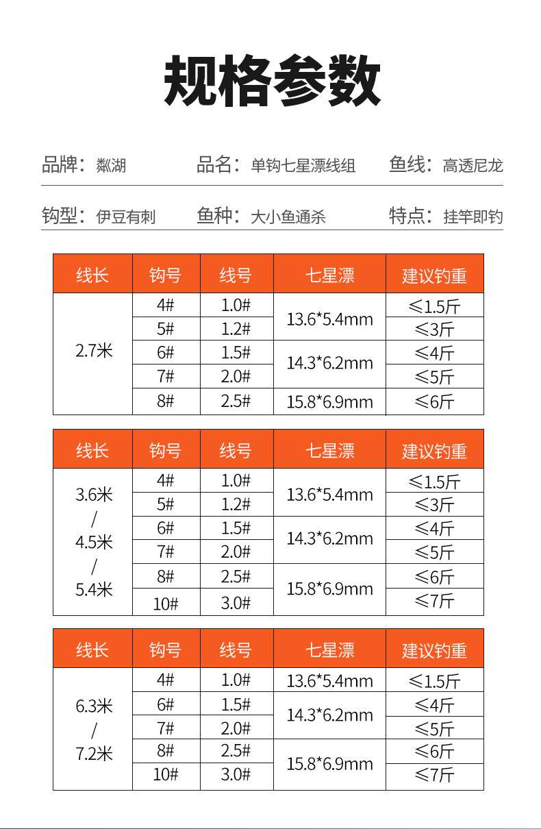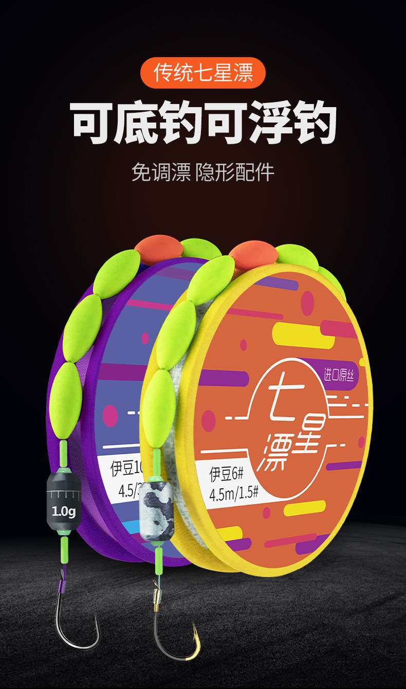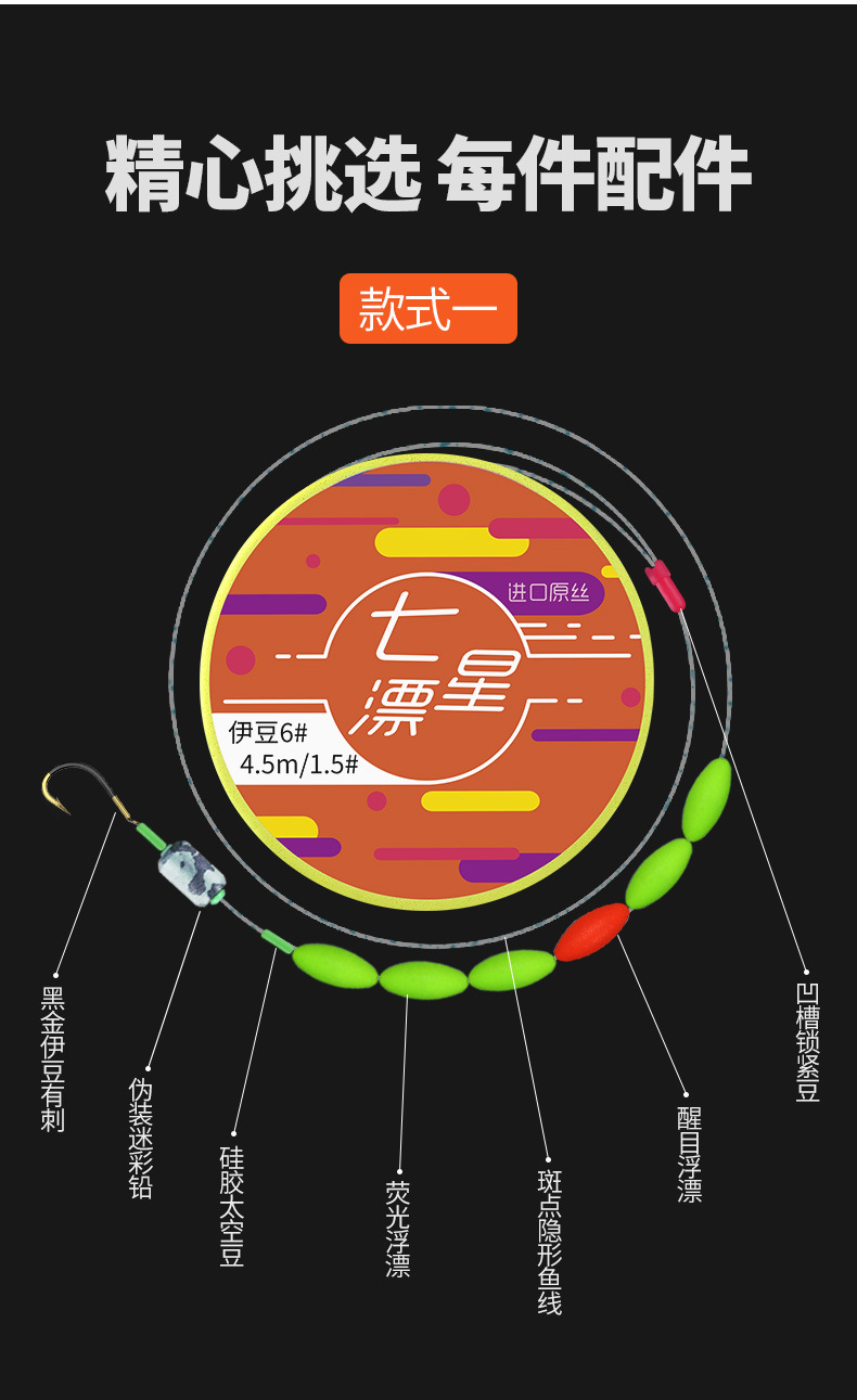 粼湖七星漂线组 传统钓成品斑点鱼线单钩套装手工七星钩线组批发