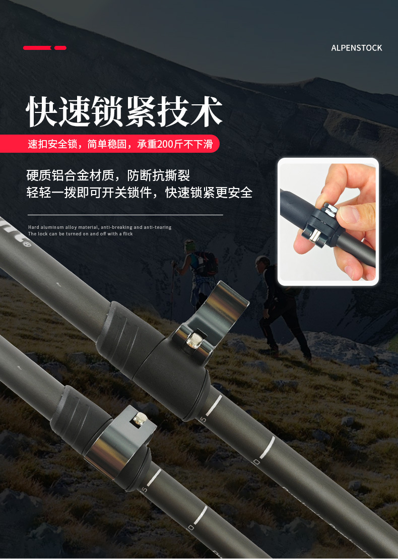 户外可伸缩铝合金登山杖超轻便捷式手杖徒步爬山拐杖登山装备拐棍